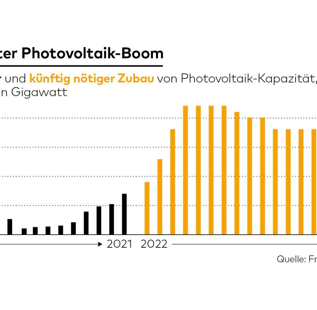 As a recent calculation by the economic consulting firm PriceWaterhouseCoopers (PwC) shows, a tremendous effort is required to achieve these figures. On a long-term average, around 20 gigawatts of additional solar power output would have to be generated every year. That is almost three times as much as in the previous absolute record year 2011, when 7.9 gigawatts of capacity were installed. In the past three years, the average annual increase has not even reached four gigawatts.